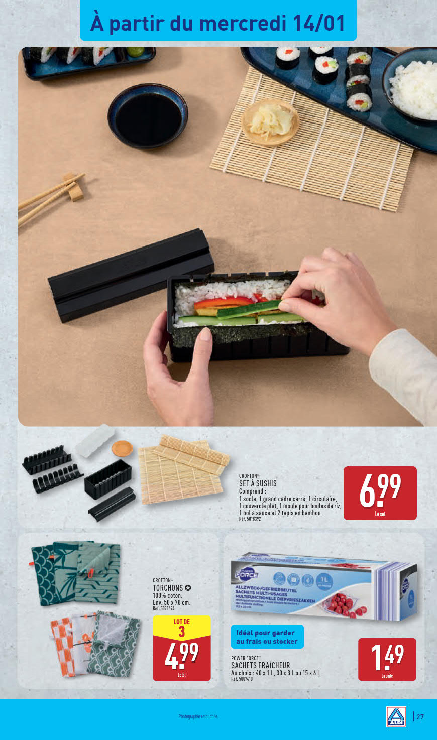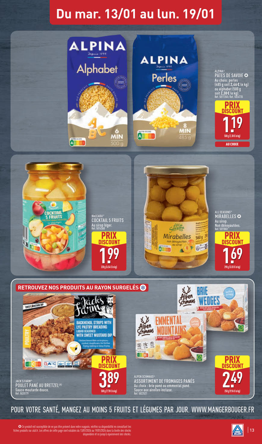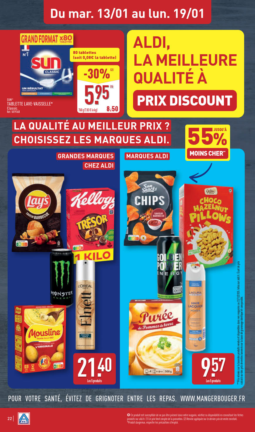 Dernières promotions et le catalogue de ⚡ Aldi valable au 19 janvier. Explorez le catalogue actuel de Aldi, valable jusqu'au 19 janvier.
