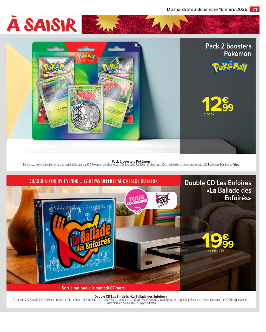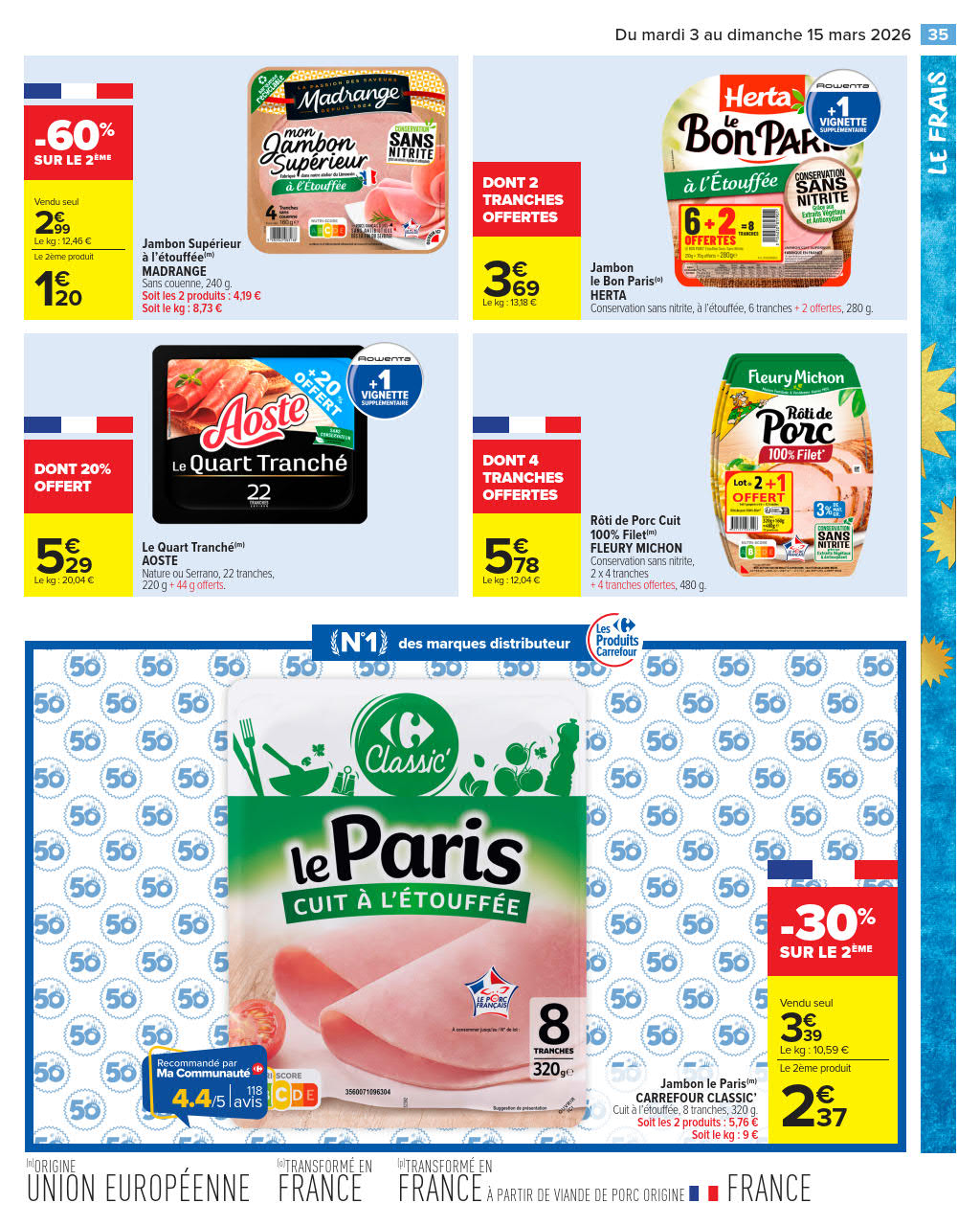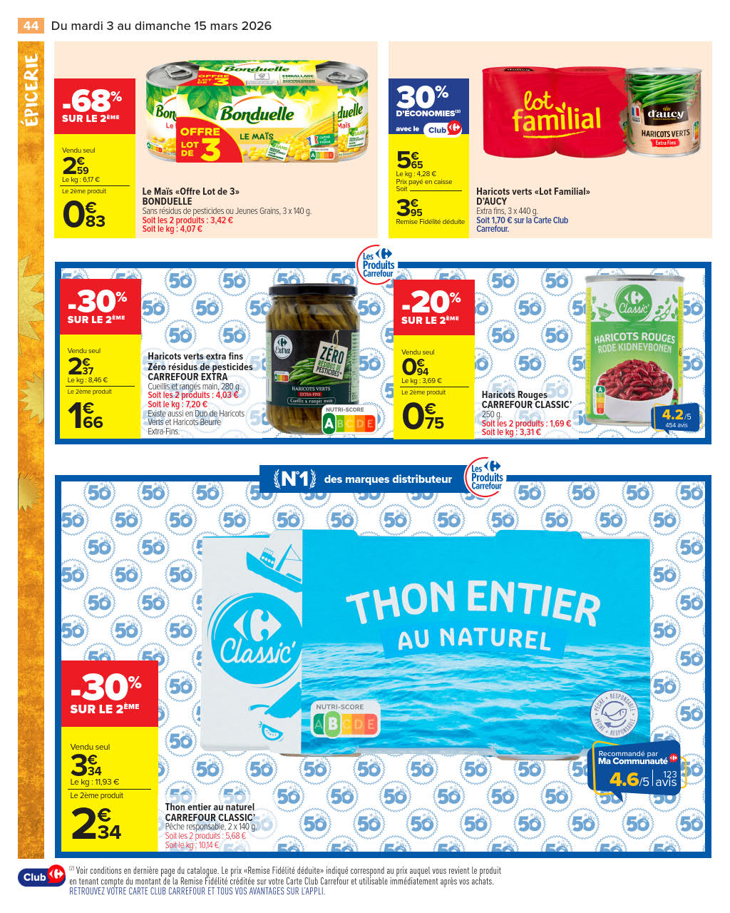 Dernières promotions et le catalogue de ⚡ Carrefour Market valable au 15 mars. Explorez le catalogue actuel de Carrefour Market, valable jusqu'au 15 mars.