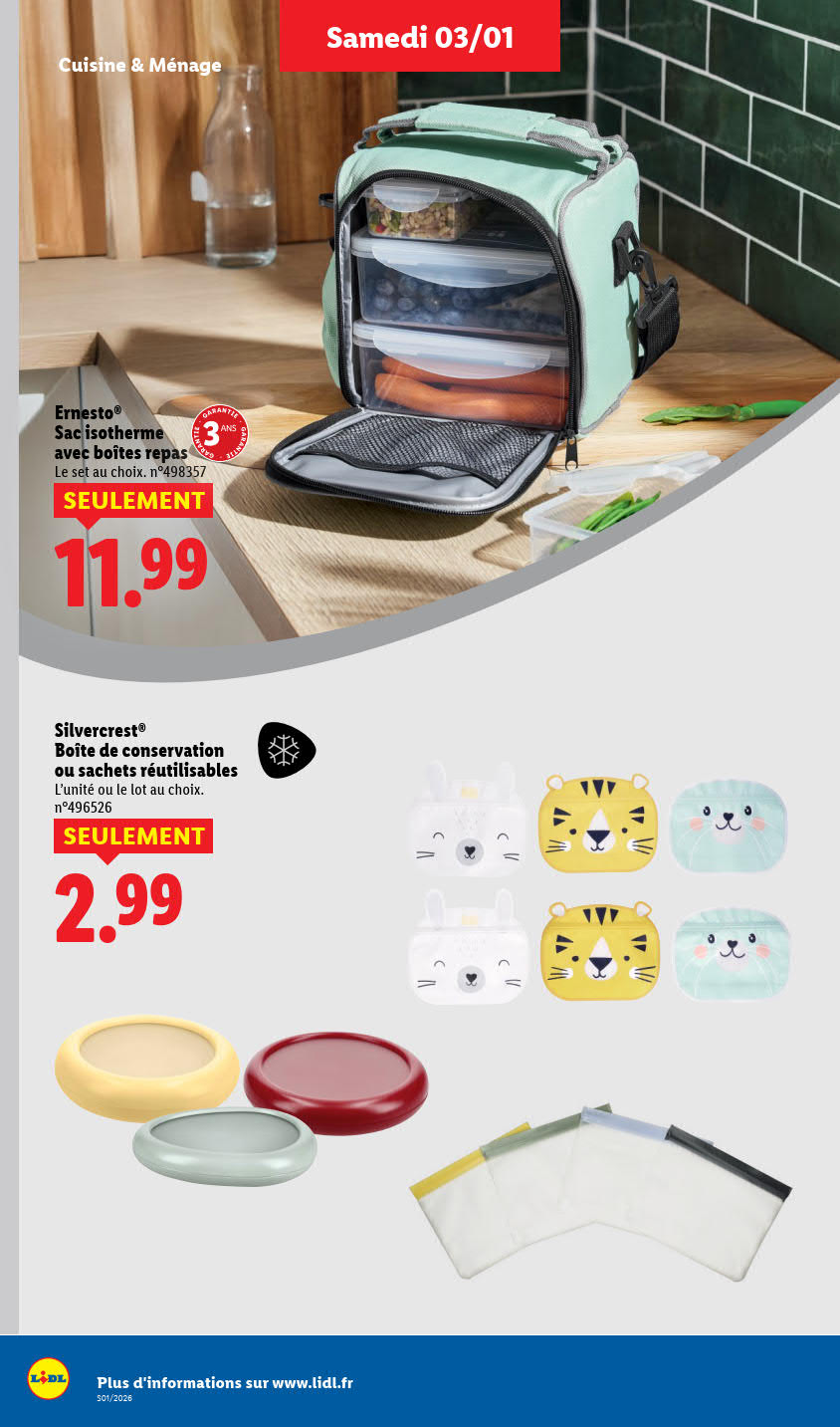 Dernières promotions et le catalogue de ⚡ Lidl valable au 09 janvier. Explorez le catalogue actuel de Lidl, valable jusqu'au 09 janvier.