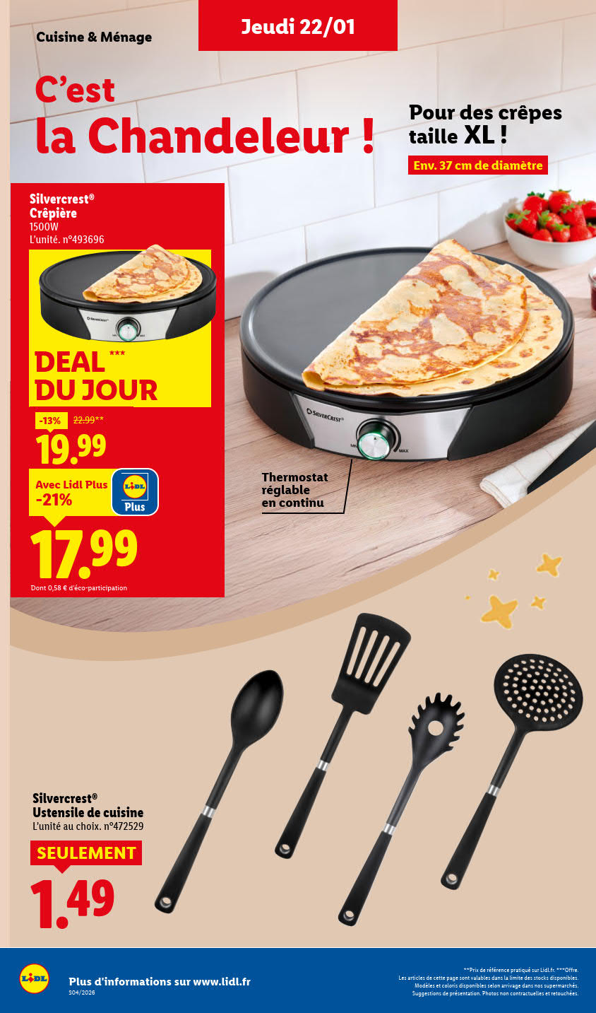 Dernières promotions et le catalogue de ⚡ Lidl valable au 28 janvier. Explorez le catalogue actuel de Lidl, valable jusqu'au 28 janvier.