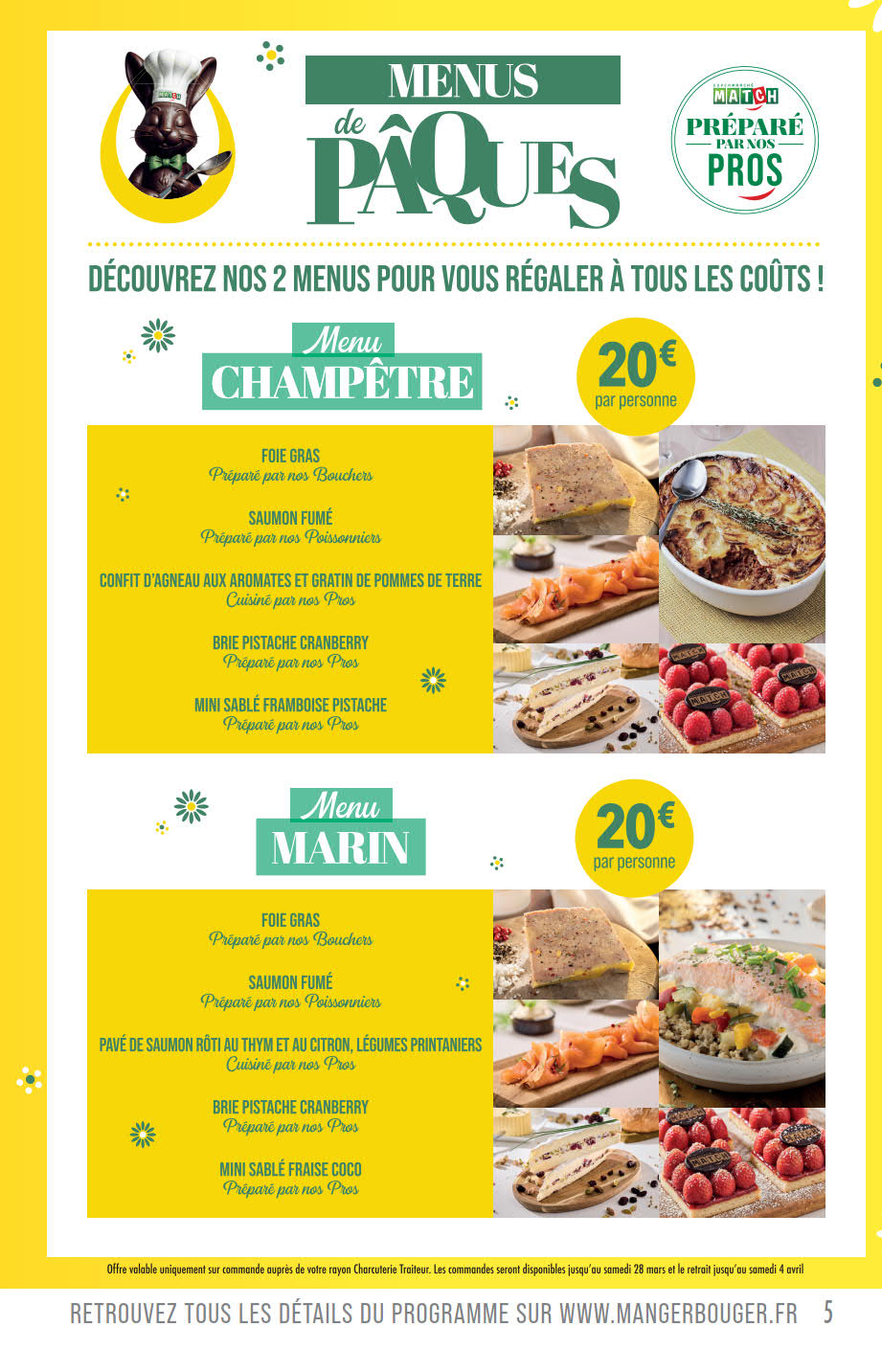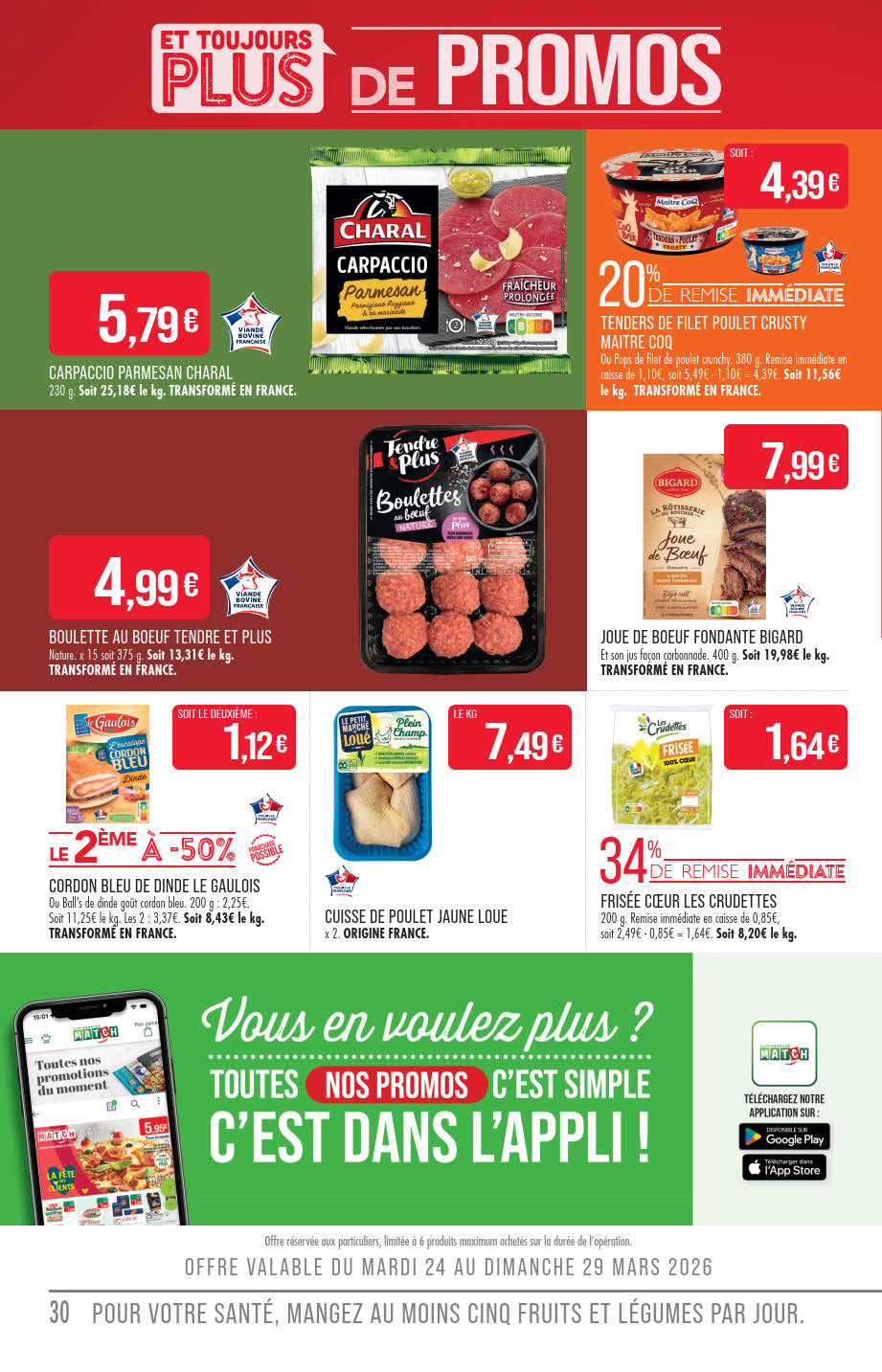 Dernières promotions et le catalogue de ⚡ Match valable au 05 avril. Explorez le catalogue actuel de Match, valable jusqu'au 05 avril.